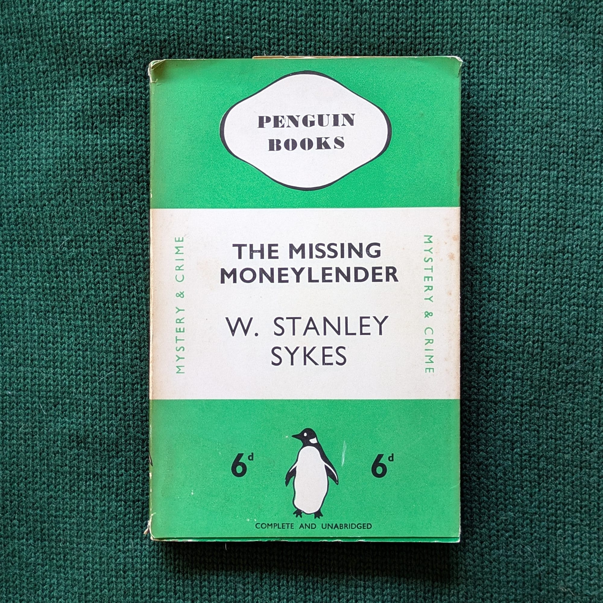 With the scene set, then, let's go through the Green Penguin Book Club postbag from the last couple of months. The episode about The Missing Moneylender by W. Stanley Sykes (Penguin 62) sparked some very interesting contributions, about everything from outdated murder methods and 20C insulin practices to true crime factoids. And I even heard from one listener about a Green Penguin spotted within a Green Penguin...