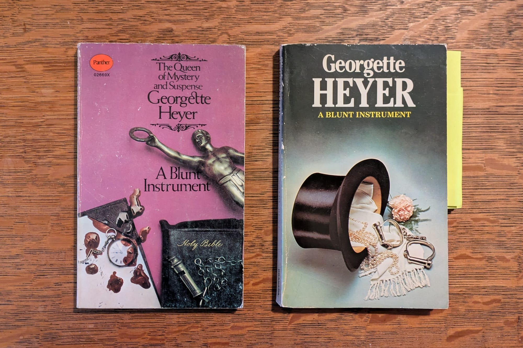 This 1939 book was Heyer's first and only real attempt at a true "impossible crime". A man is shot while crossing a bridge in full view of witnesses. Nobody can find the gun or the shooter, nor is it possible that, given the angle, the culprit got away unobserved. How was it done? As Jen explains in our episode, Georgette's husband Ronald devised the setup of this one and she had to get him to explain it again before she could write the ending. Personally, my favourite bit of this book is Ermyntrude Carter, a former chorus girl who has made good via a sequence of successful marriages.